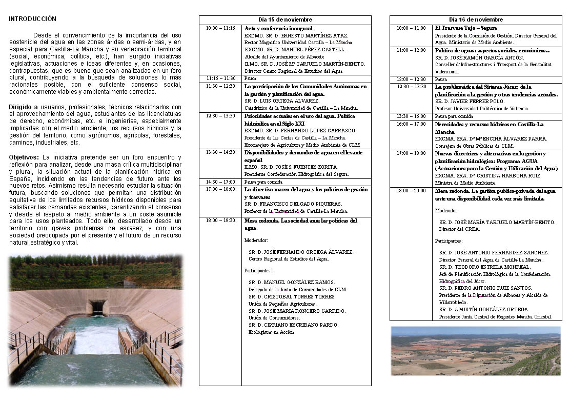 Jornadas La Gestion del Agua en Castilla-La Mancha Campus de Albacete. Paraninfo Universitario
