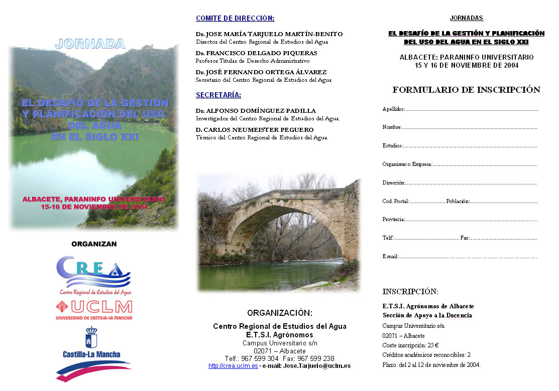 - Centro Regional de Estudios del Agua (CREA) de la UCLM, Ctra. De las Peñas, s/n – Albacete.
