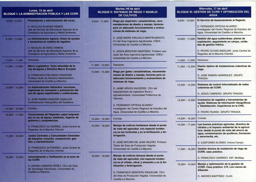 Curso de Manejo y Gestion del Agua en el Regadio